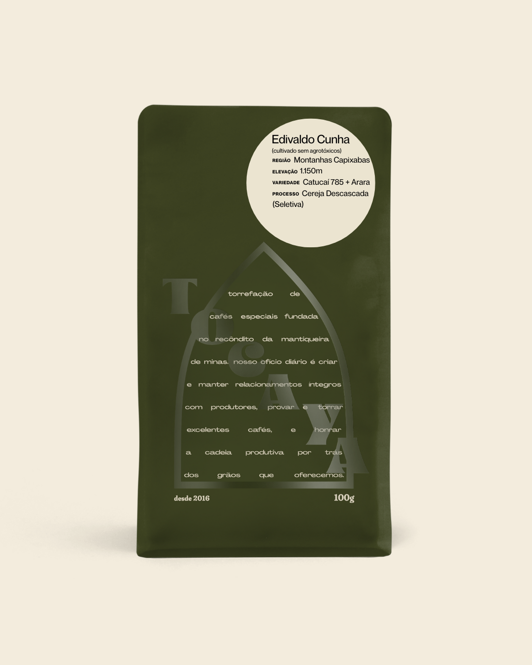 Ficha técnica: Arara + Catucaí 785 CD, única colheita (seletiva) e nanolote. Cultivo agroecológico com ME. Peneirado por nós mesmos, aqui. Perfil: toffee, baunilha, limpo, mascavo.